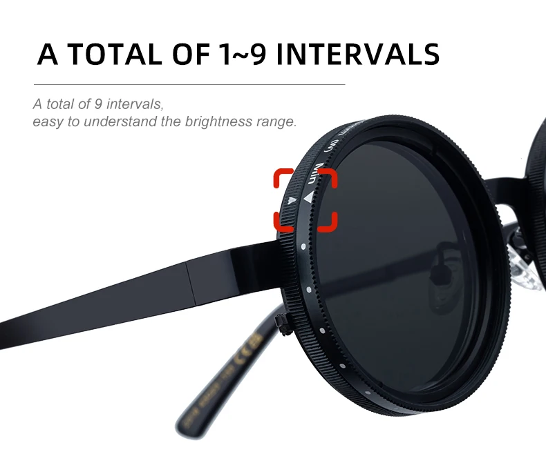 Round Adjustable ND Polarized UV400 Shades Sun Glasses Sunglasses for Women Men